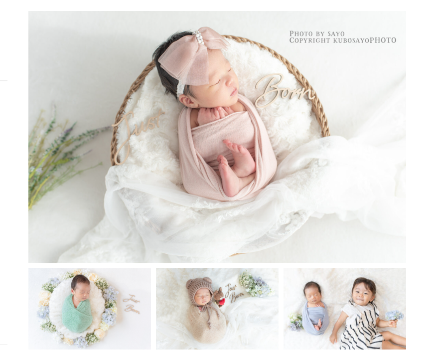 新生児~キッズ、ポートレート撮影のプロとして1,200組を超える実績があるので安心です。